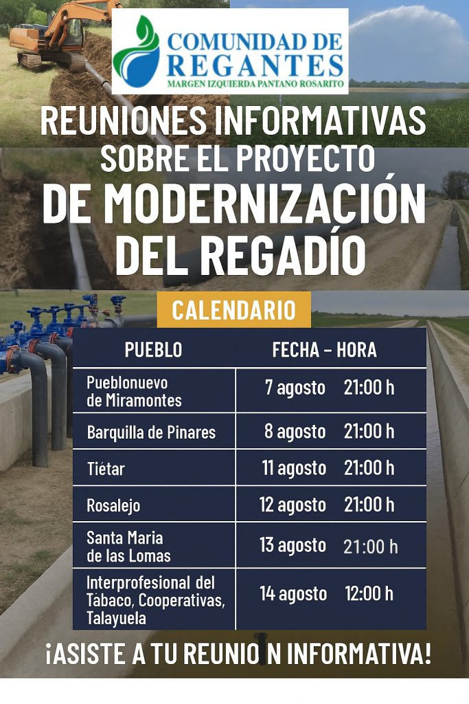 💬 Se explicarán los detalles de esta importante iniciativa para el futuro del regadío en nuestra zona.